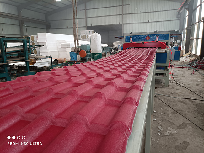 超豐塑機調(diào)試完成的新合成樹脂瓦生產(chǎn)線